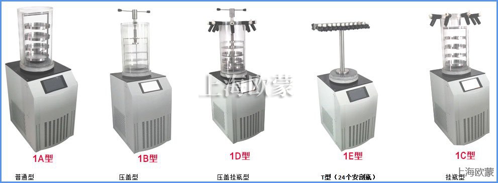 冷凍干燥機規格:FD-1A-50普通型、FD-1B-50壓蓋型、FD-1C-50多歧管普通型、FD-1D-50多歧管壓蓋型、FD-1E-50 T 型架