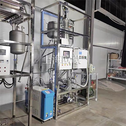 為了優(yōu)化每個工藝過程的操作參數(shù),優(yōu)化蒸發(fā)器的性能,為大生產(chǎn)裝置獲得設(shè)計數(shù)據(jù),通常采用中試規(guī)模的短程蒸餾器進(jìn)行研究。設(shè)備由金屬質(zhì)制成(不銹鋼/TA2等)。因此,中試短程蒸餾器的蒸發(fā)面積更大,產(chǎn)量更高,不僅適合于中試研究,也非常適于小規(guī)模的生產(chǎn),處理量可達(dá)到4公斤到200公斤以上。